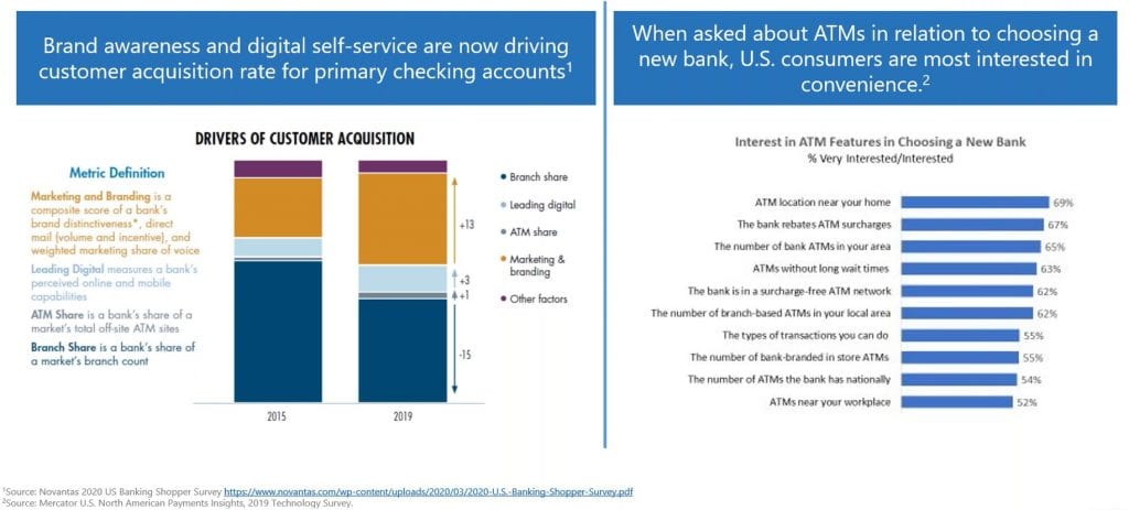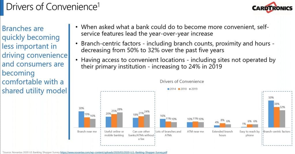 Fees are also an important factor. Mercator found that 67% of consumers consider ATM fees when selecting a bank. Cardtronics’ data reinforces this finding; when consumers who recently switched financial institutions were asked the reason why, 28% reported it was due to fees.